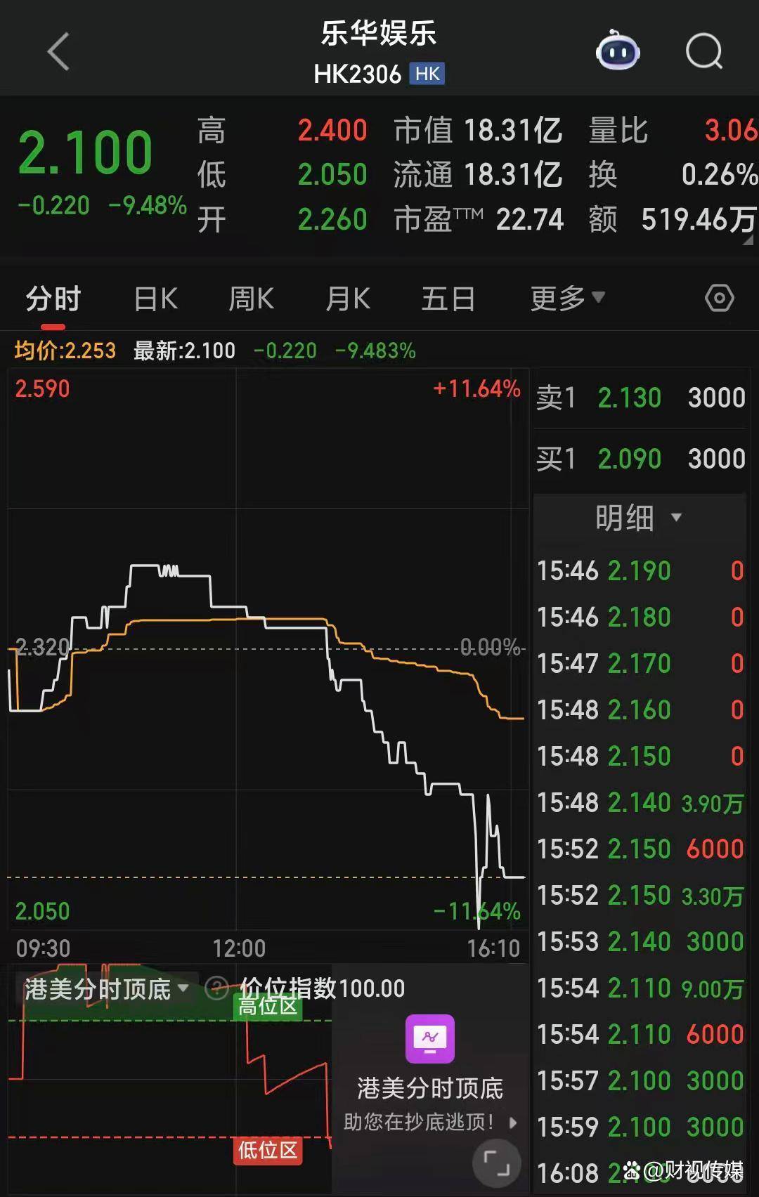 11月7日,乐华娱乐的股价下跌9.48%,股价来到2.1港元每股,市值为18.31亿港元。
