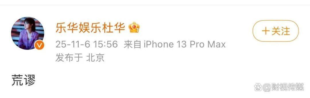 近日,有多方爆料王一博到期不续约乐华,将乐华娱乐推至舆论的风口浪尖。对此,11月6日乐华娱乐董事长杜华发表微博称“荒谬”,疑似回应相关信息。
